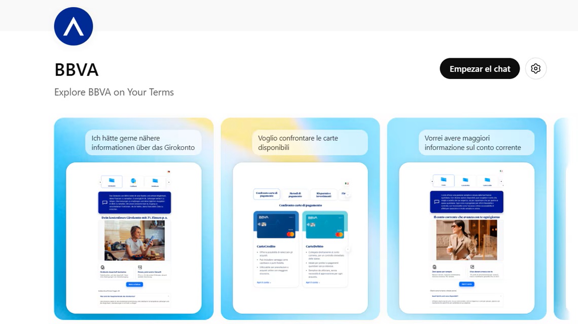 The application is designed to respond to informational queries, making it easier for users to learn about BBVA’s digital banking services in both markets. Through conversational interaction, users can review and compare account features, payment cards and savings products offered by the bank’s digital operations in Italy and Germany. The application also provides direct links to relevant product pages on the BBVA website, allowing customers to continue their journey seamlessly.