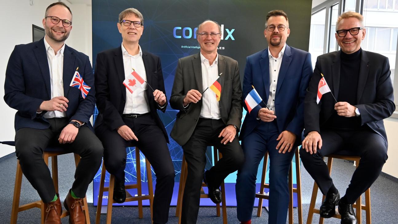 From left: Dr. Rainer Buehling (Director Strategy, Marketing and cortAIx in Germany), Dr. Bernhard Quendt (CTO Thales Group), Cedric Jean-Jacques Demeure (VP cortAIx Labs), Christoph Ruffner (CEO Thales Germany and Country Director) and Heiko Lütjens (Director Engineering and CTO Thales Germany) ©Thales
