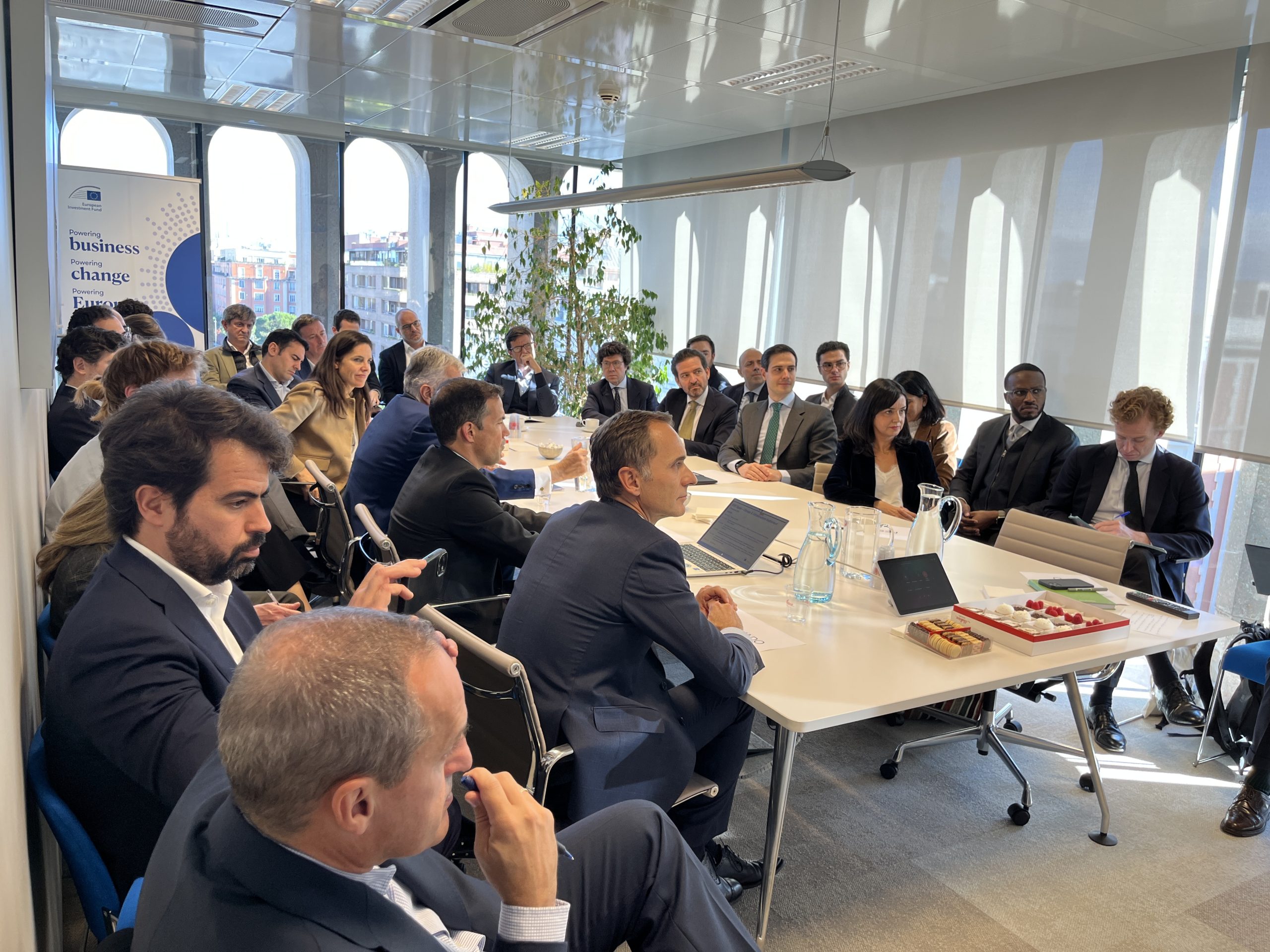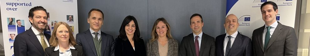 Photo caption from left to right: Christian López-Baillo (EIF), Alison Burney (EIF), Gabriele Todesca (EIF), María Romano (EIB Group), María Palanca (Ministry of Economy, Trade and Enterprise of Spain) , Jose Cabrita (EIF), David González (EIF), Ignacio Carrión (EIF).
